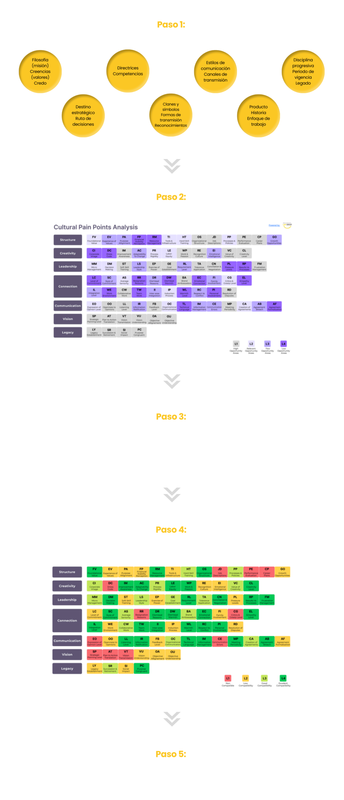 90% de las compañías consideran que la cultura está compuesta por conceptos habituales como lo son Misión, Visión y Valores. Sin embargo, estos conceptos representan apenas el 5% de lo que en realidad abarca la Cultura Corporativa y 98% de las compañías a nivel global no cuentan con herramientas que permitan diseñarla e implementarla.